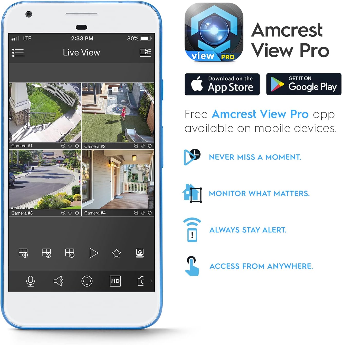 • Intelligentere Sicherheit - Mit der Amcrest View-App erhalten Sie Benachrichtigungen zu Bewegungsalarmen und können Filmmaterial über Ihr Smartphone anzeigen. Professionelle Wiedergabe und Aufnahme auf einem PC mit Amcrest Surveillance Pro für Windows und MAC (im Lieferumfang enthalten) oder Blue Iris Professional. Kompatibel mit Amcrest Cloud Remote-Videospeicher, MicroSd-Karte (bis zu 256 GB), Amcrest NVRs, Synology und QNAP NAS, FTP, Edge, Chrome, Mozilla Firefox und Safari.
