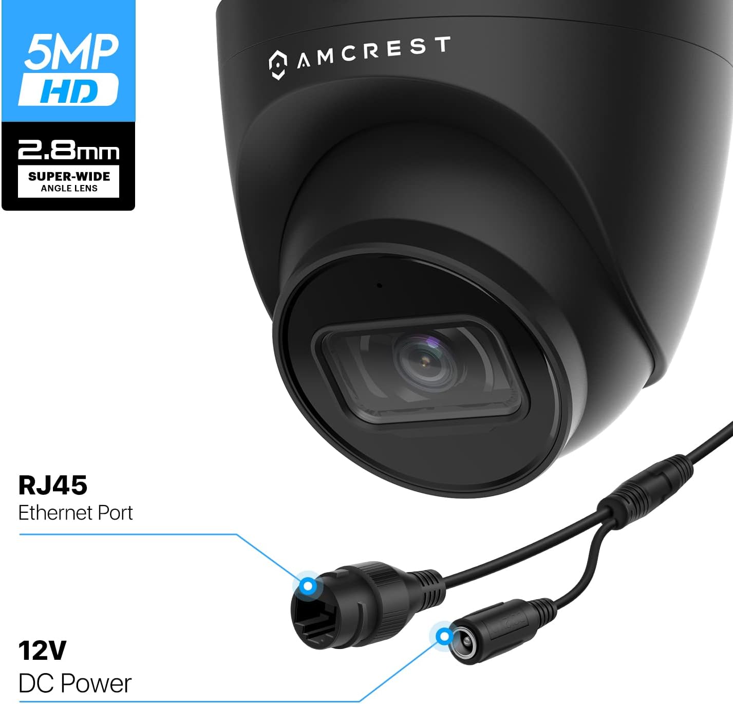 Amcrest 5MP UltraHD IP-Revolver-PoE-Kamera für den Außenbereich mit Mikrofon/Audio, 5MP, 98 Fuß NightVision, 2,8-mm-Objektiv, IP67 wetterfest, MicroSD-Aufzeichnung (256 GB) Schwarz ‎IP5M-T1179EB-28MM